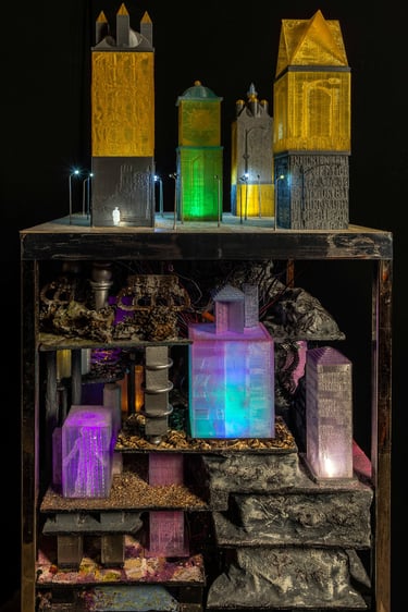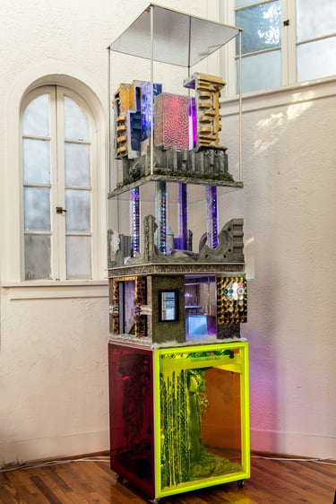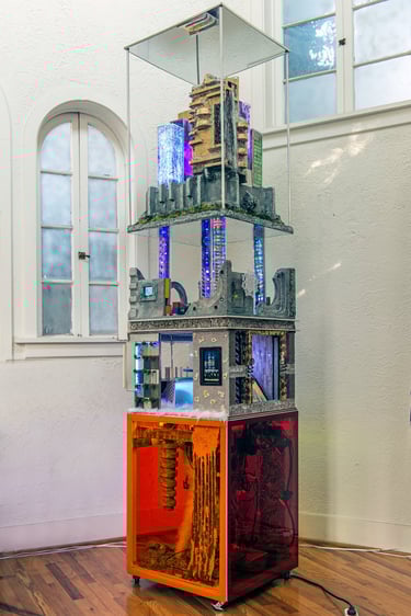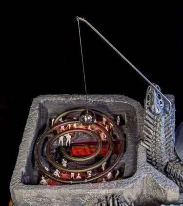 Ely Tahan is a visual artist, born in Lebanon and currently living and working in the Los Angeles area. His creations of the last decade are startling evidence of a leap in his development as a maker of complex three dimensional objects which he terms self-performing. That is autonomous objects designed to be thought provoking and elicit intense emotional responses.