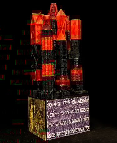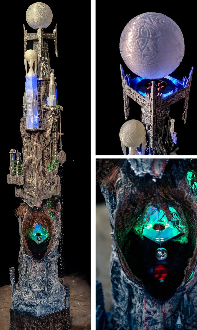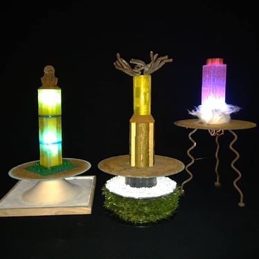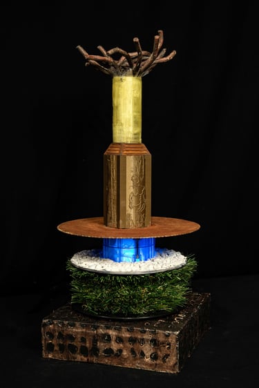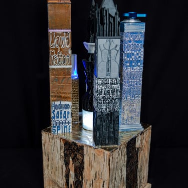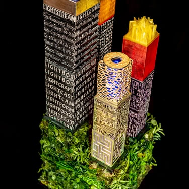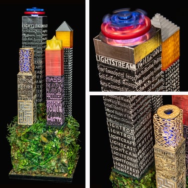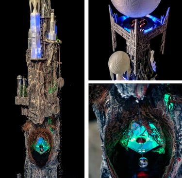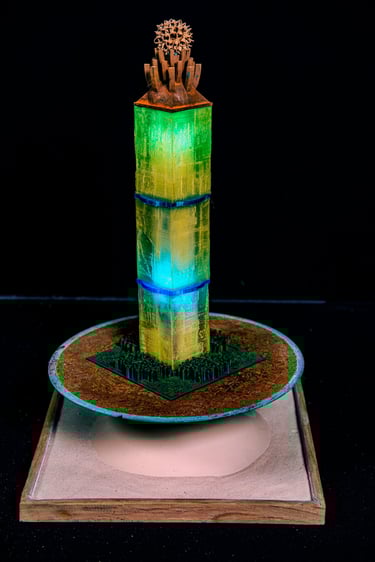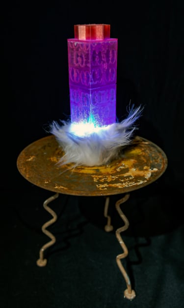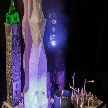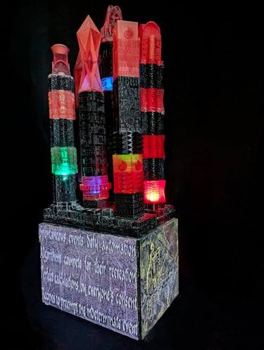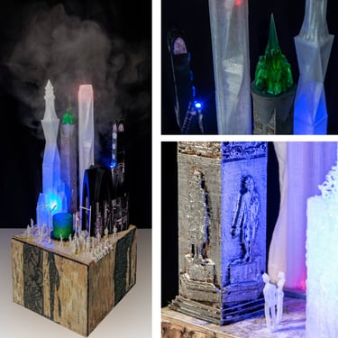 Wood, Mirror, PLA and SLA Resin 3d prints, LEDs, Looping Audio track.
